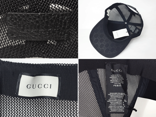 【仕様】つばと前面にGG柄、後面はメッシュ地、後頭部にレザーのロゴタグ付き、イタリア製、※多少しわやよれ等がございます。