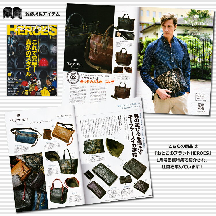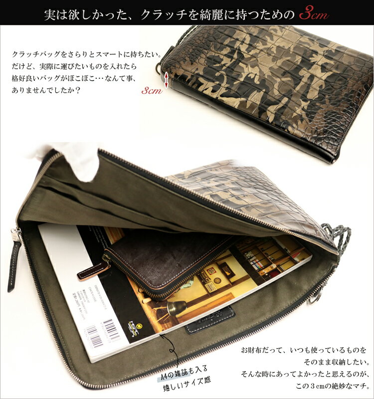 雑誌掲載商品【Kiefer neu キーファーノイ】カムコッコ< A4対応 >陰影の美しいカモフラ柄の、イタリア製クロコエンボスレザークラッチ▽ Camucocco series ▽▽Kiefer neuシリーズ一覧▽ レビューの書き方はこちら