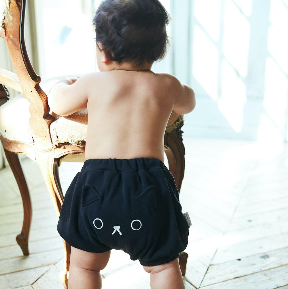 ◆ねこさんのお顔のブルマ ◆ハイハイする後ろ姿、よちよちアンヨの後ろ姿がさらにかわいく、家族を笑顔にするブルマ。