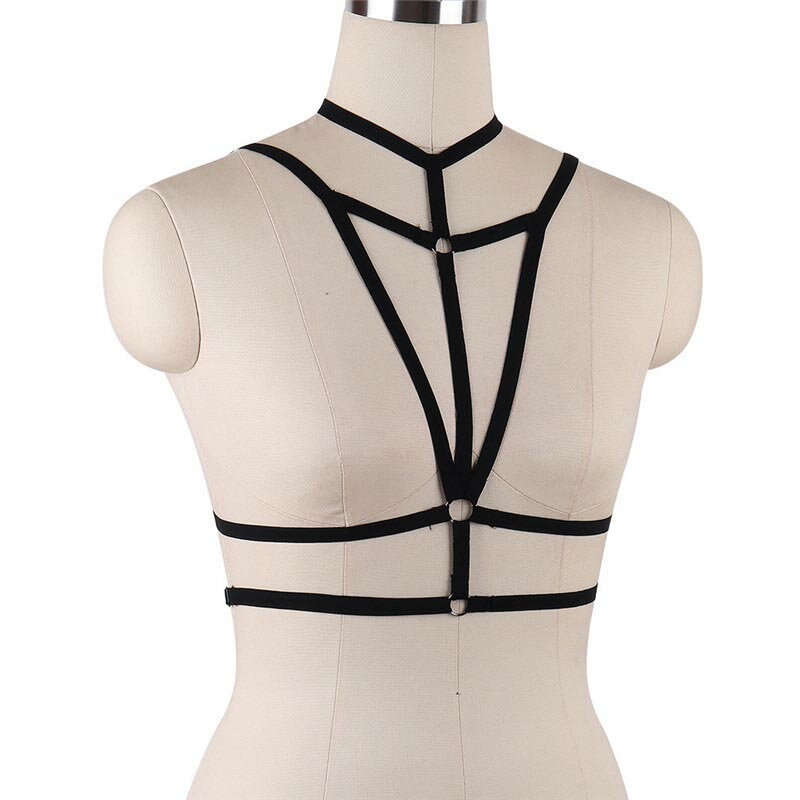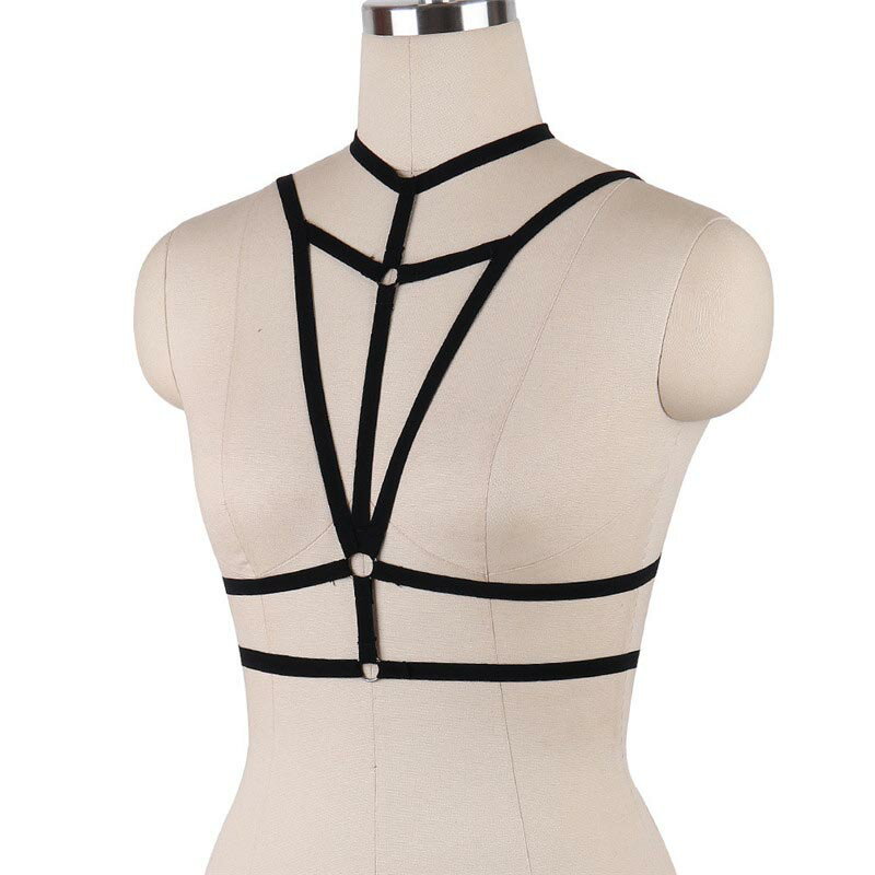黒い伸縮性のあるポリエステル製のボンテージ風ハーネス。