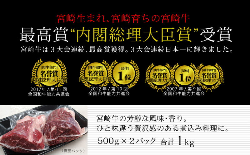 宮崎牛の煮込み用スネ合計1kg(500g×2パック)です。